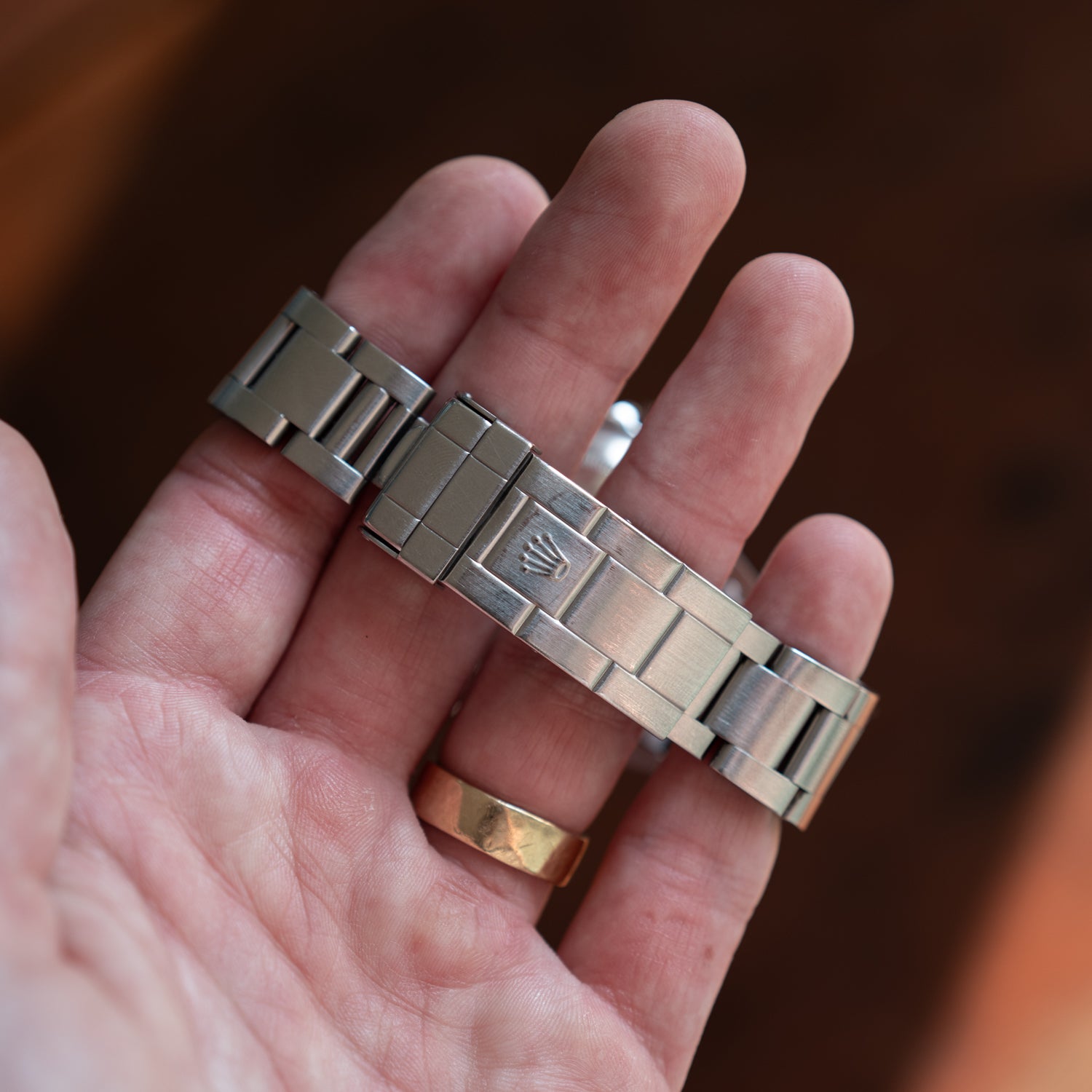 Condition: Excellent, case appears unpolished. The black bezel has naturally faded into a deep navy, an increasingly rare and sought-after detail. Light, age-appropriate marks add character without compromising its appeal. A standout for collectors who value vintage authenticity. Includes two Rolex service cards, box, and papers.